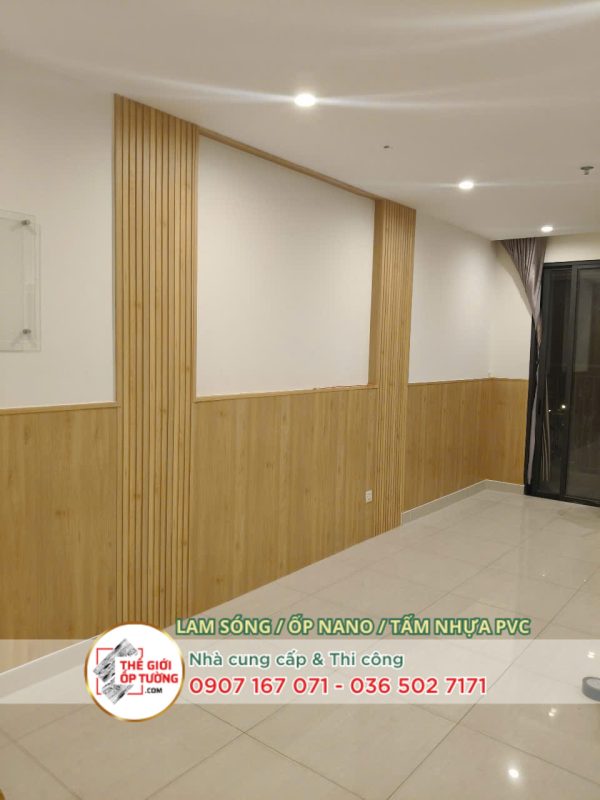 công trình ốp nano kết hợp thanh lam giả gỗ tại tpchm quận 12