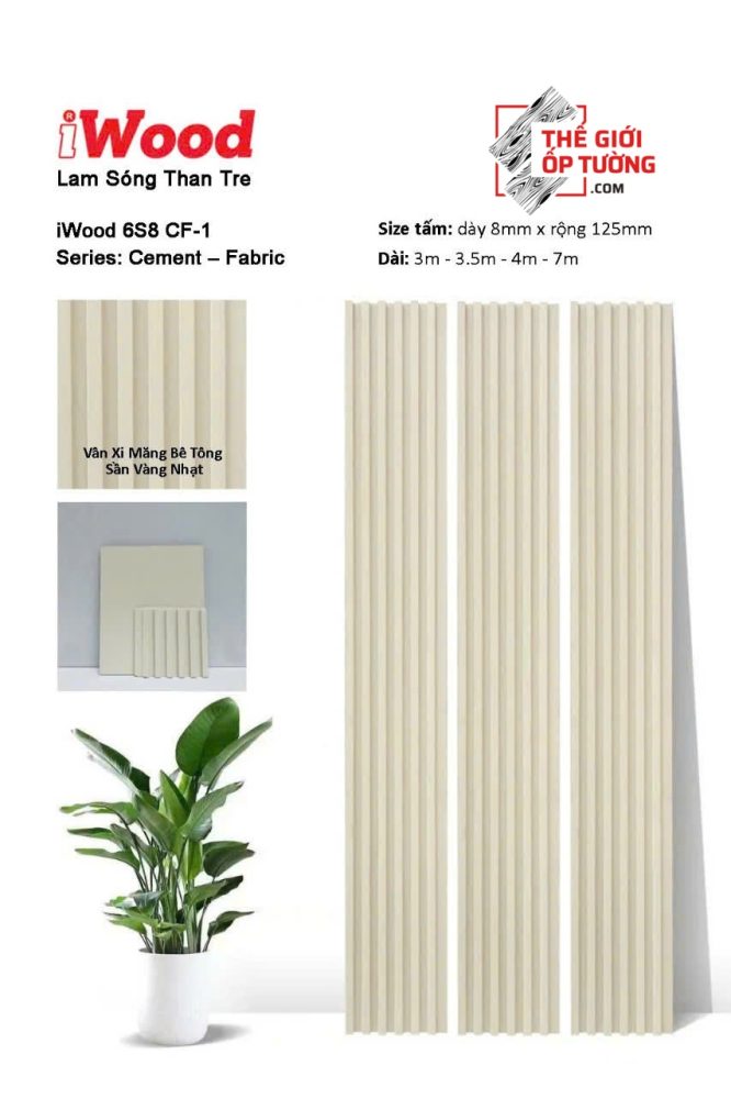 Lam Sóng Than Tre iWOOD vân xi măng sần vàng nhạt – xám