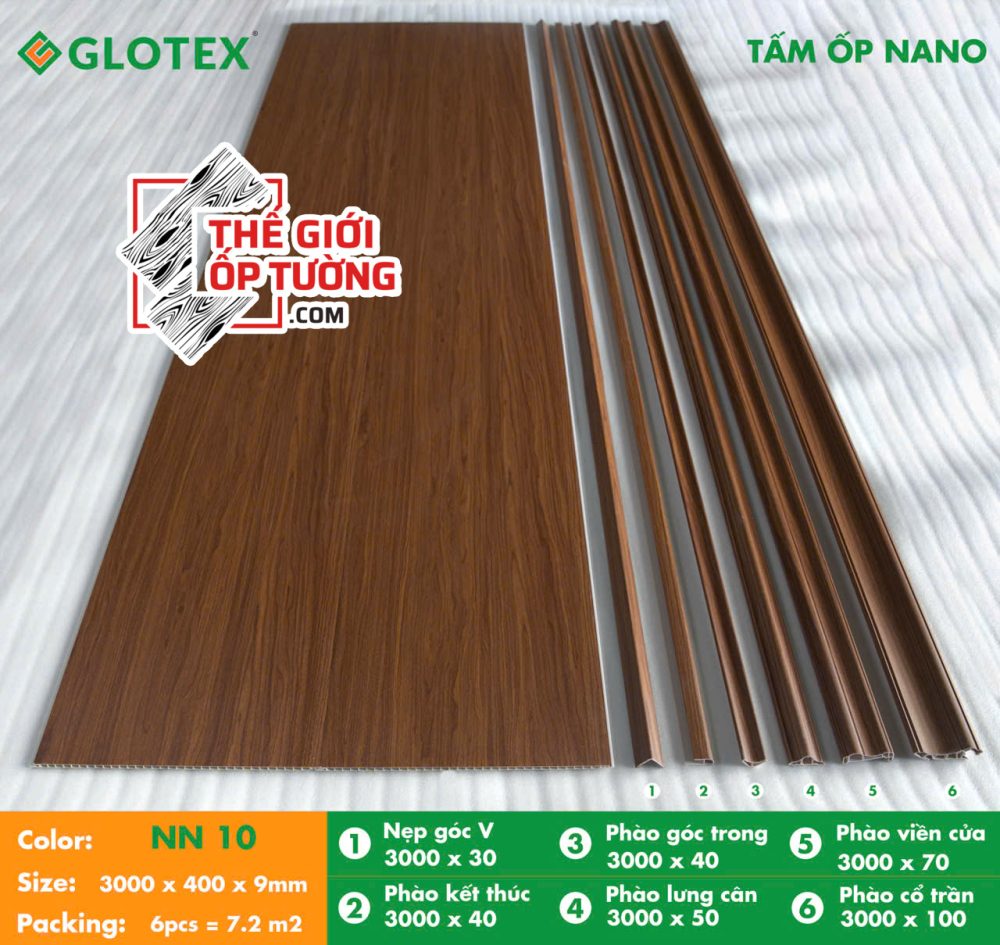 - Chất liệu: Tấm ốp tường giả gỗ nano được tạo thành chủ yếu từ nhựa PVC và các chất phụ gia tổng hợp, đảm bảo độ bền cao và bề mặt luôn giữ được vẻ mới mẻ.