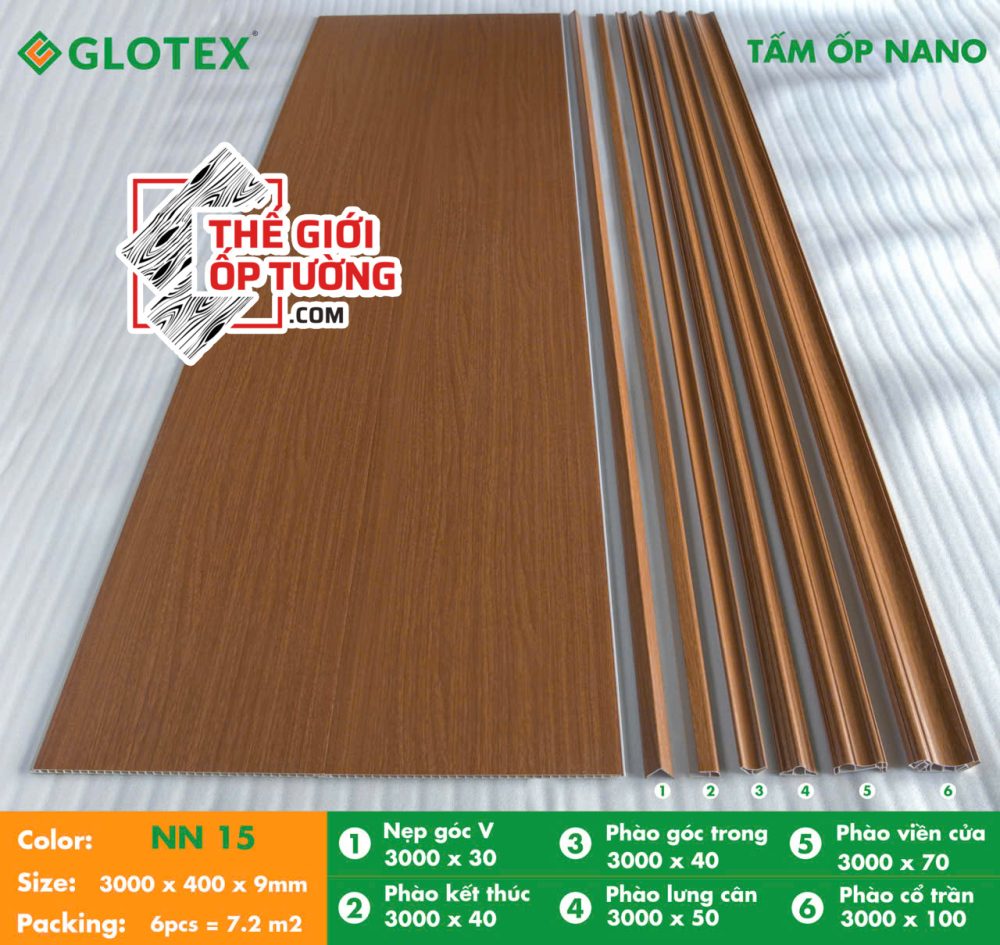 - Chất liệu: Tấm ốp tường giả gỗ nano được tạo thành chủ yếu từ nhựa PVC và các chất phụ gia tổng hợp, đảm bảo độ bền cao và bề mặt luôn giữ được vẻ mới mẻ.