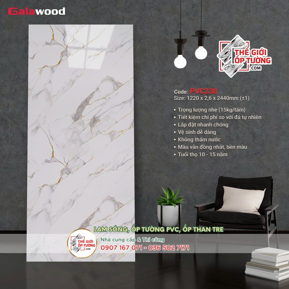 Tấm ốp tường PVC nhựa vân đá Galawood 238