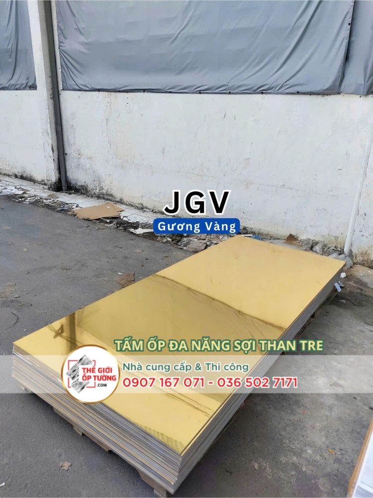 Tấm ốp tường than tre cao cấp gương vàng JGV