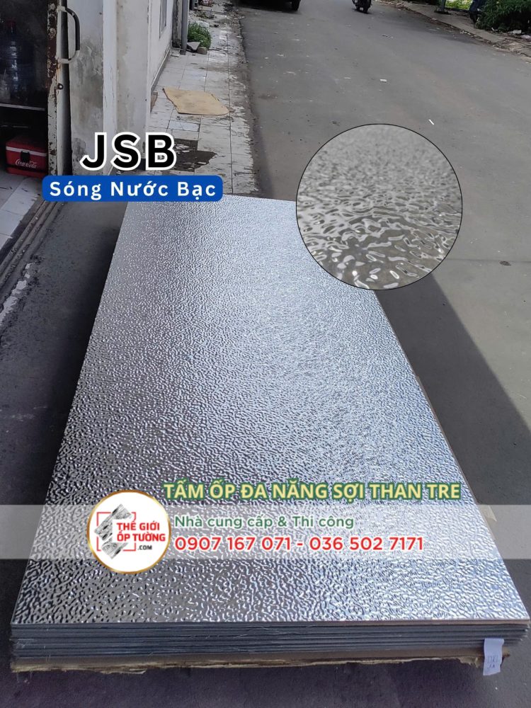 Tấm ốp tường than tre cao cấp sóng nước bạc JSB